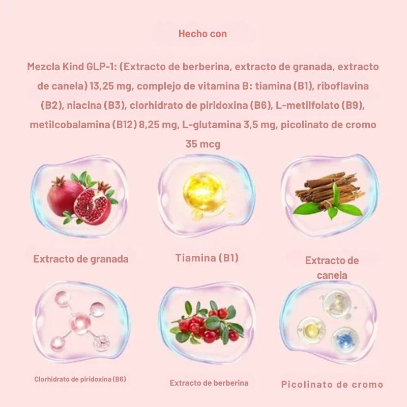 Son para ti si: Buscas controlar el apetito de forma natural sin inyecciones ni pastillas. Quieres reducir antojos sin cambiar drasticamente tu dieta. Necesitas apoyo en tu proceso de control de peso. Estás buscando una alternativa natural a los GLP-1 farmacéuticos. No es para: Menores de edad. Mujeres embarazadas o en lactancia. Personas alérgicas a los ingredientes. Si estás bajo tratamiento médico, consulta a tu profesional de salud antes de usar.