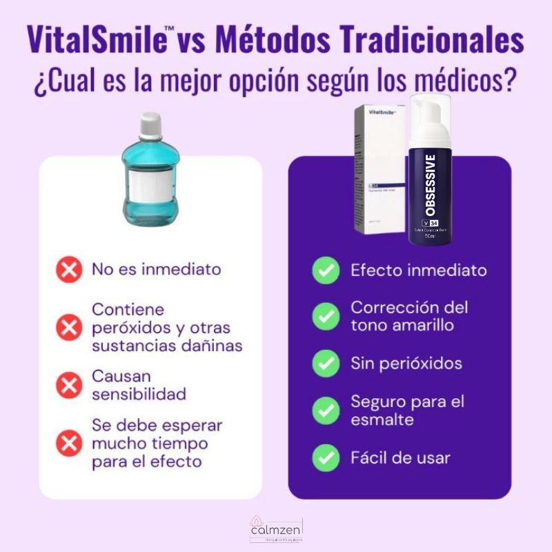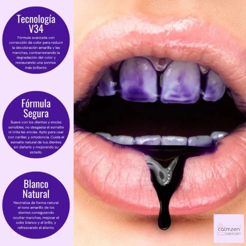 Al aplicar la pasta morada en tus dientes, neutralizaras los tonos amarillos y los ocultarás, revelando un tono perceptiblemente más blanco. ¡Bastante genial, verdad?